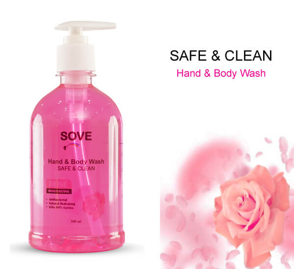 Sove Rose Hand & Body Wash is designed to effectively cleanse and protect hands, killing 99.9% of germs. Enriched with moisturisers, it leaves hands feeling soft and hydrated.